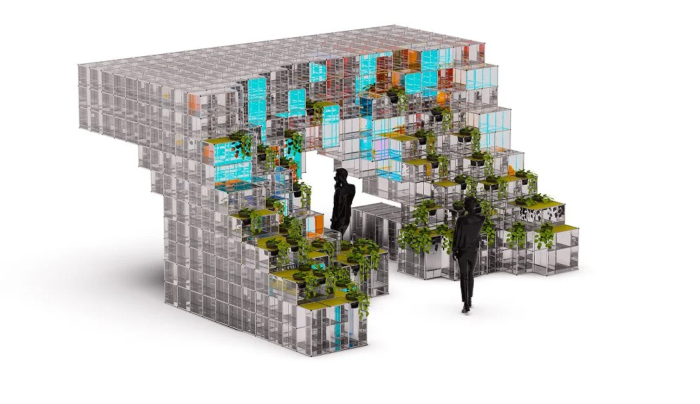Every project in both spaces was carefully integrated into the furniture, creating unique moments and viewing scenarios for each. The Palazzo breaks the norms of how USM’s furniture typically exists; tubes floating amongst the structure are a result of the intersection of the sphere and the grid, allowing viewers to visually perceive a curvature within the furniture. Dichroic glass is illuminated from the exterior windows, and the furniture opens itself for visitors to view a timeline depicting the history of Cloud-9 Architecture, the Virginia Tech Honors College, and the Venice Architecture Biennale.